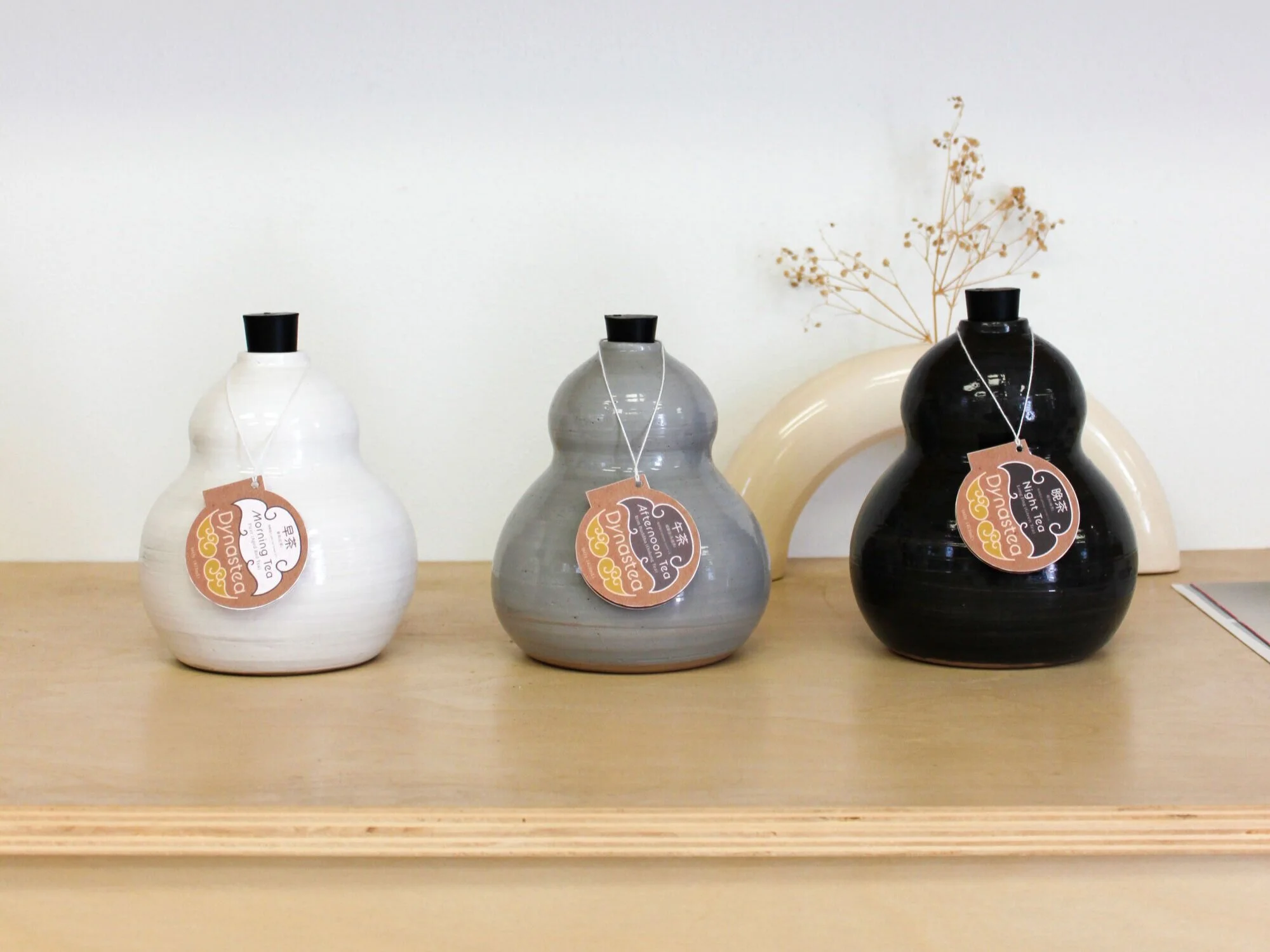 The bottles themselves are work of art. Made from ceramics, the bottles bring to mind traditional Chinese pottery, and utilize color to symbolize the best time of day to drink the tea based off the amount of caffeine.
